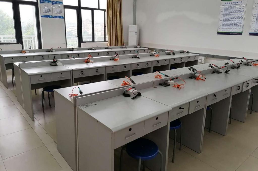 產(chǎn)業(yè)學(xué)院多功能實(shí)驗(yàn)室(-)位于白云校區(qū)第一實(shí)訓(xùn)樓5樓504室,使用面積60m2,配有操作臺(tái)、數(shù)字示波器、熱風(fēng)槍、電烙鐵等工具一批,能同時(shí)容納36人次進(jìn)行實(shí)訓(xùn)和創(chuàng)新設(shè)計(jì),使用效率達(dá)400人/年。