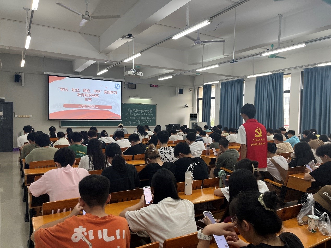 為進一步推進黨紀(jì)學(xué)習(xí)教育走深走實,豐富黨紀(jì)學(xué)習(xí)教育內(nèi)容形式,引導(dǎo)黨員干部進一步強化紀(jì)律意識,營造學(xué)院學(xué)紀(jì)、知紀(jì)、明紀(jì)、守紀(jì)的濃厚學(xué)習(xí)氛圍。6月20日,自動化學(xué)院于白云校區(qū)三教508舉辦黨紀(jì)學(xué)習(xí)教育知識競賽。自動化學(xué)院黨委書記楊延軍、黨委副書記蔣鵬、輔導(dǎo)員陳金輝、學(xué)院學(xué)生黨員、學(xué)生代表參加活動。
